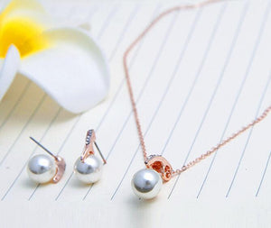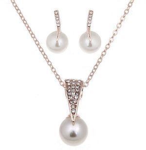 Bride Rhinestone & Pearl Necklace and Earrings Set